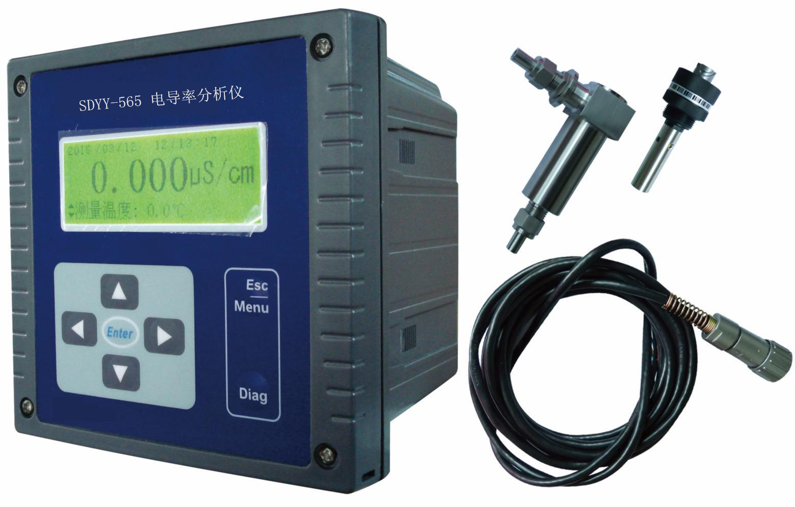 SDYY-565电导率监测仪是一款采用嵌入式技术,集信号采集、信号处理、显示、数据传输一体的智能化程度、测量精确高、操作方便的智能化专用化学仪表,可广泛应用于电力、冶金、石油、化工、制药、环保等行业水质电导率值的连续测量。